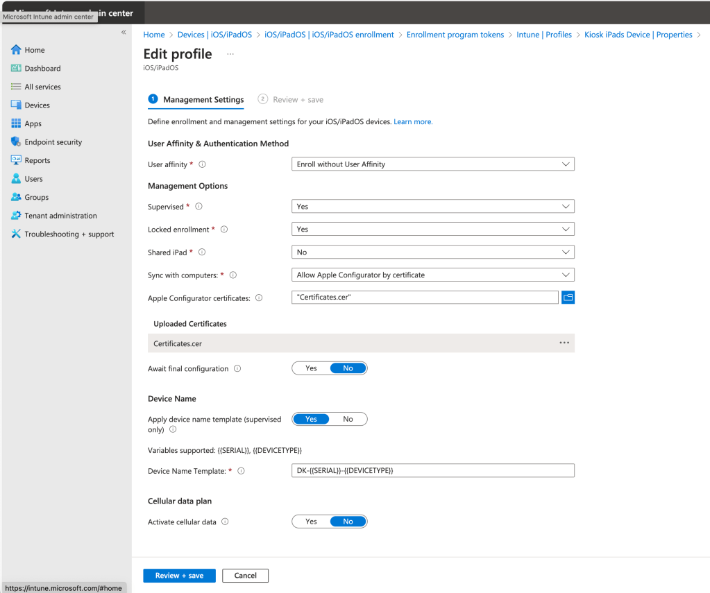 Devices | iOS/iPadOS | Enrolment | Enrolment Program Tokens | Profiles | Profile Name